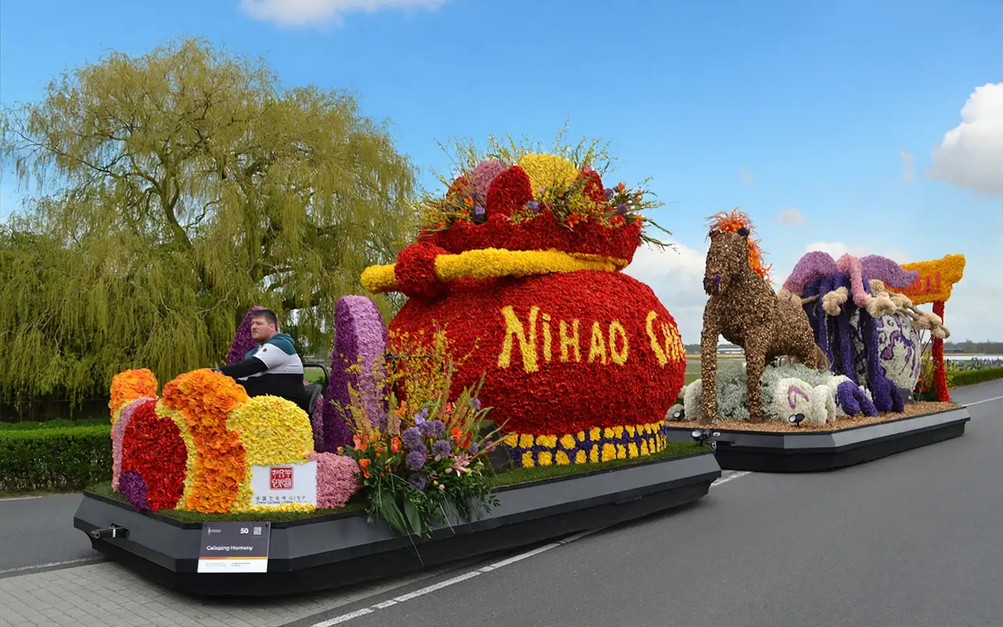 The vase overflows with vibrant flowers, representing the flourishing friendship and shared aspiration between our peoples. Adjacent to the horse, the ‘Nihao! China’ logo extends a warm and open invitation for visiting and exploring China. Through this floral journey, the float celebrates the dialogue of civilizations, where mutual respect blooms into shared beauty.