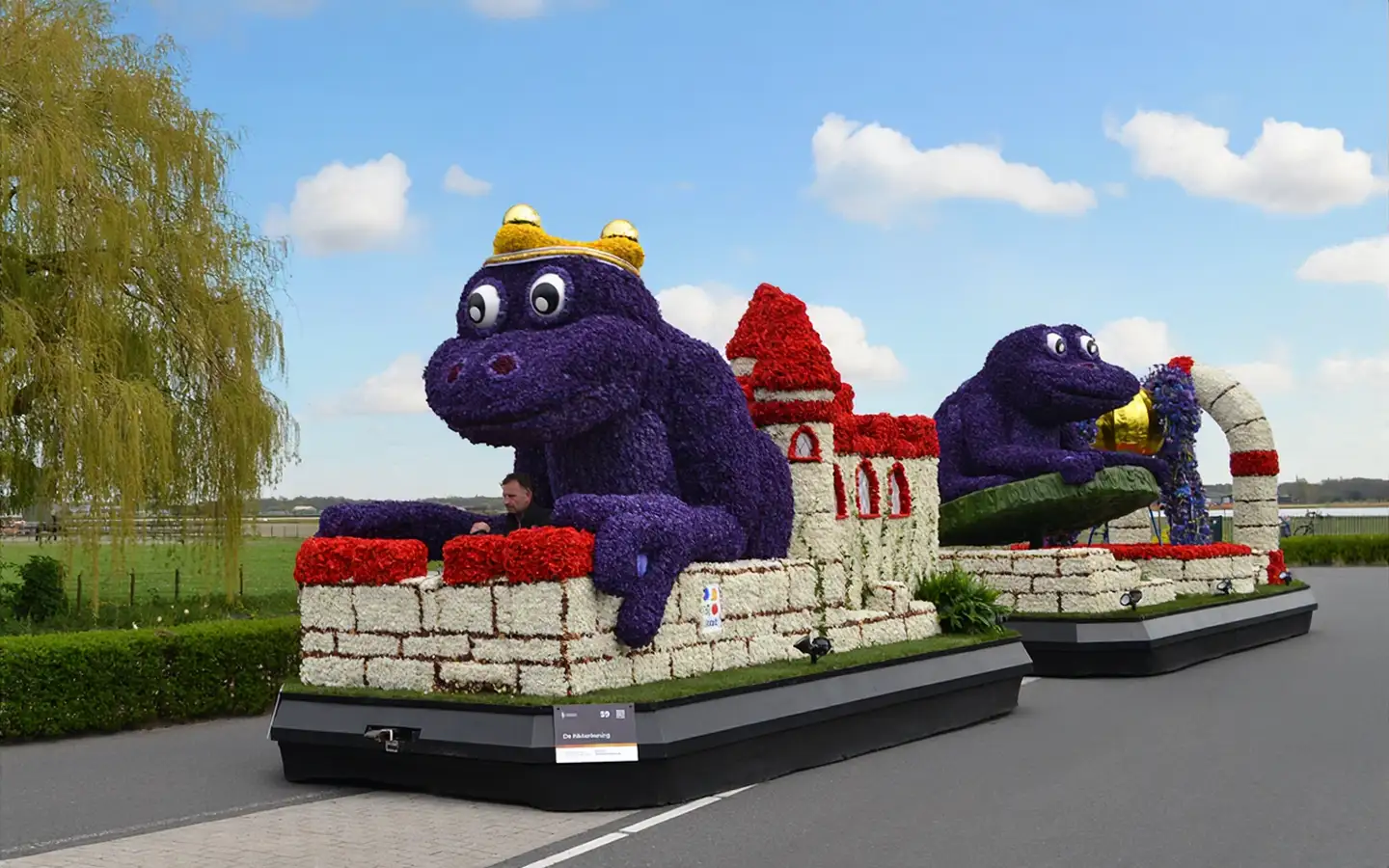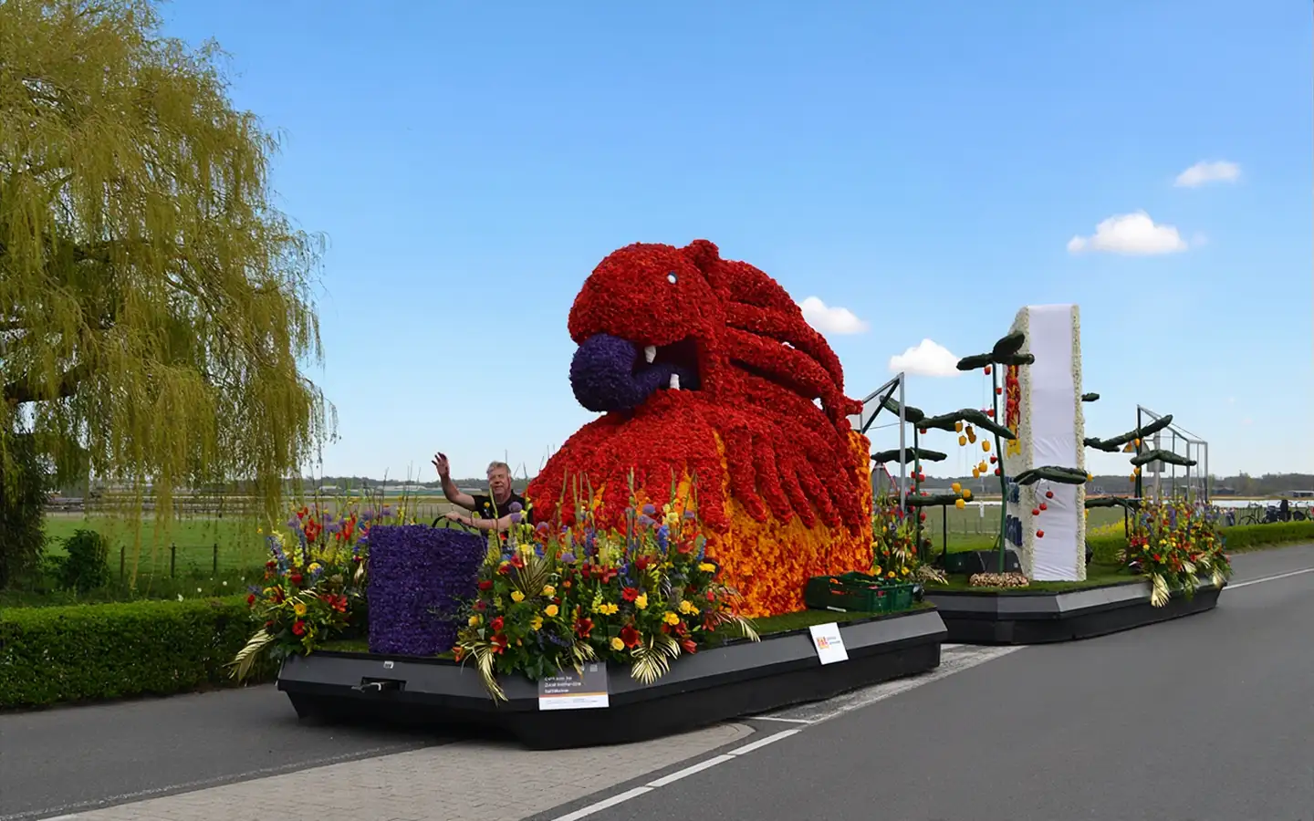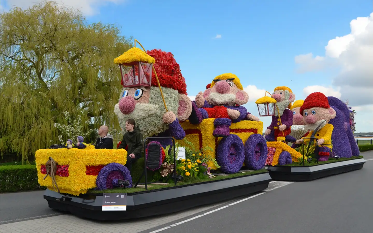 Step into the vibrant world of the Flower Parade, where imagination comes to life across 15 elaborately decorated floats, adorned with spring flowers, including hyacinths, tulips, and daffodils.