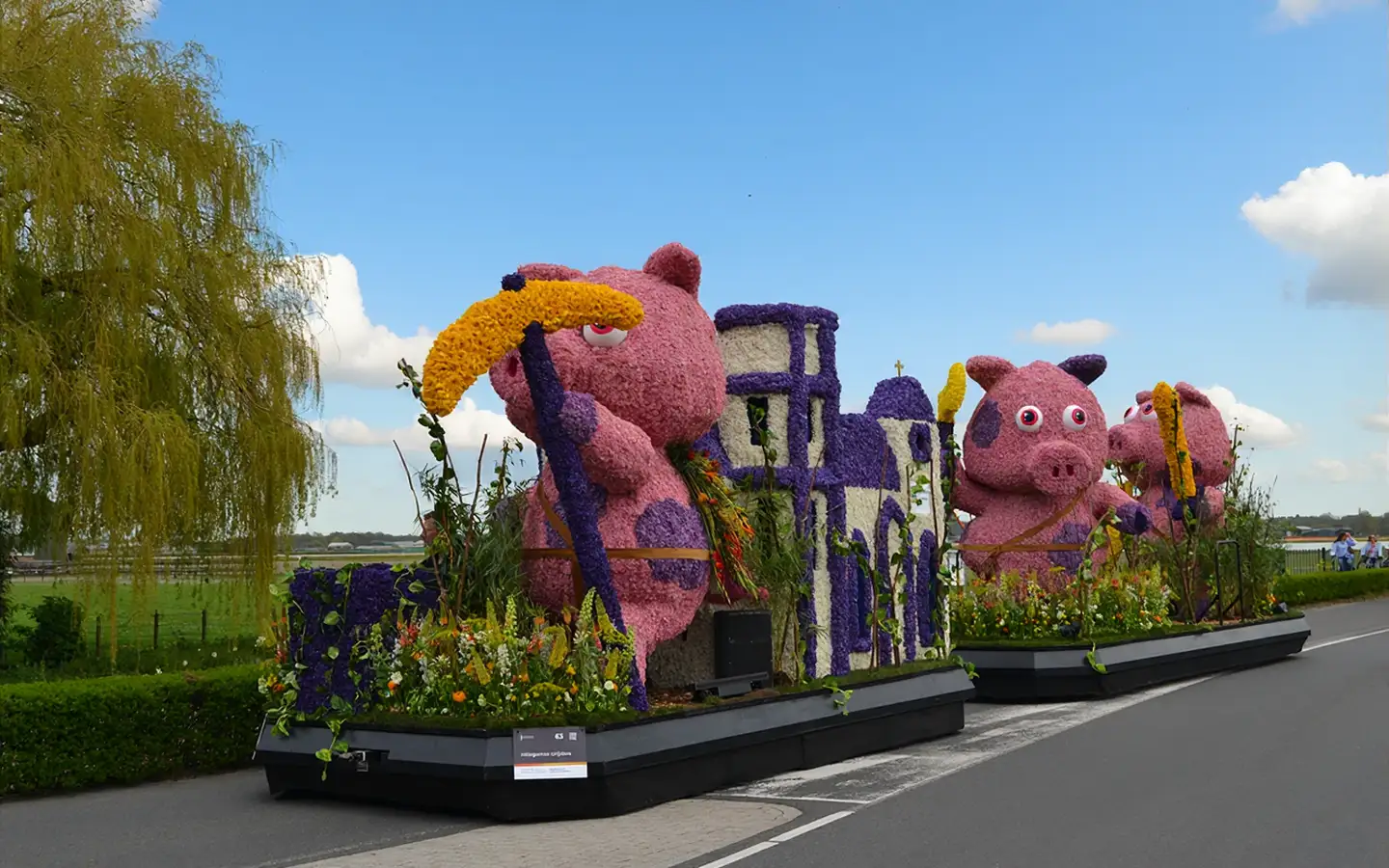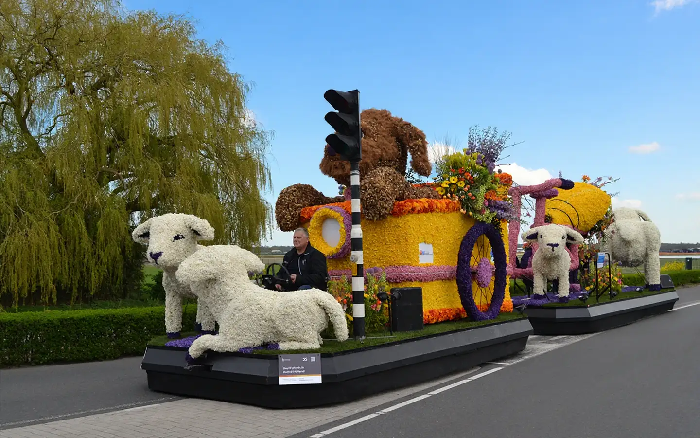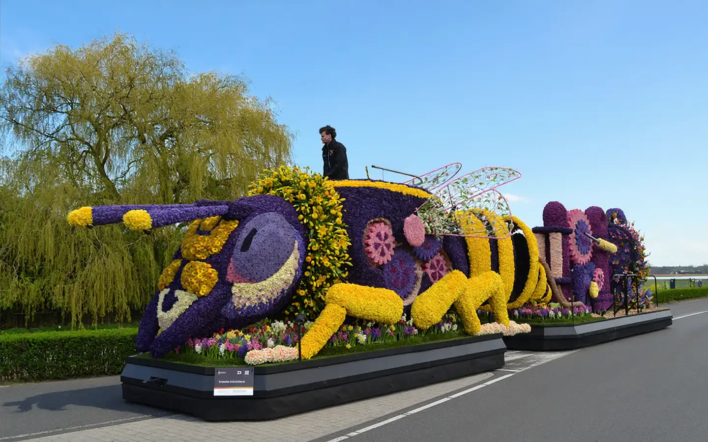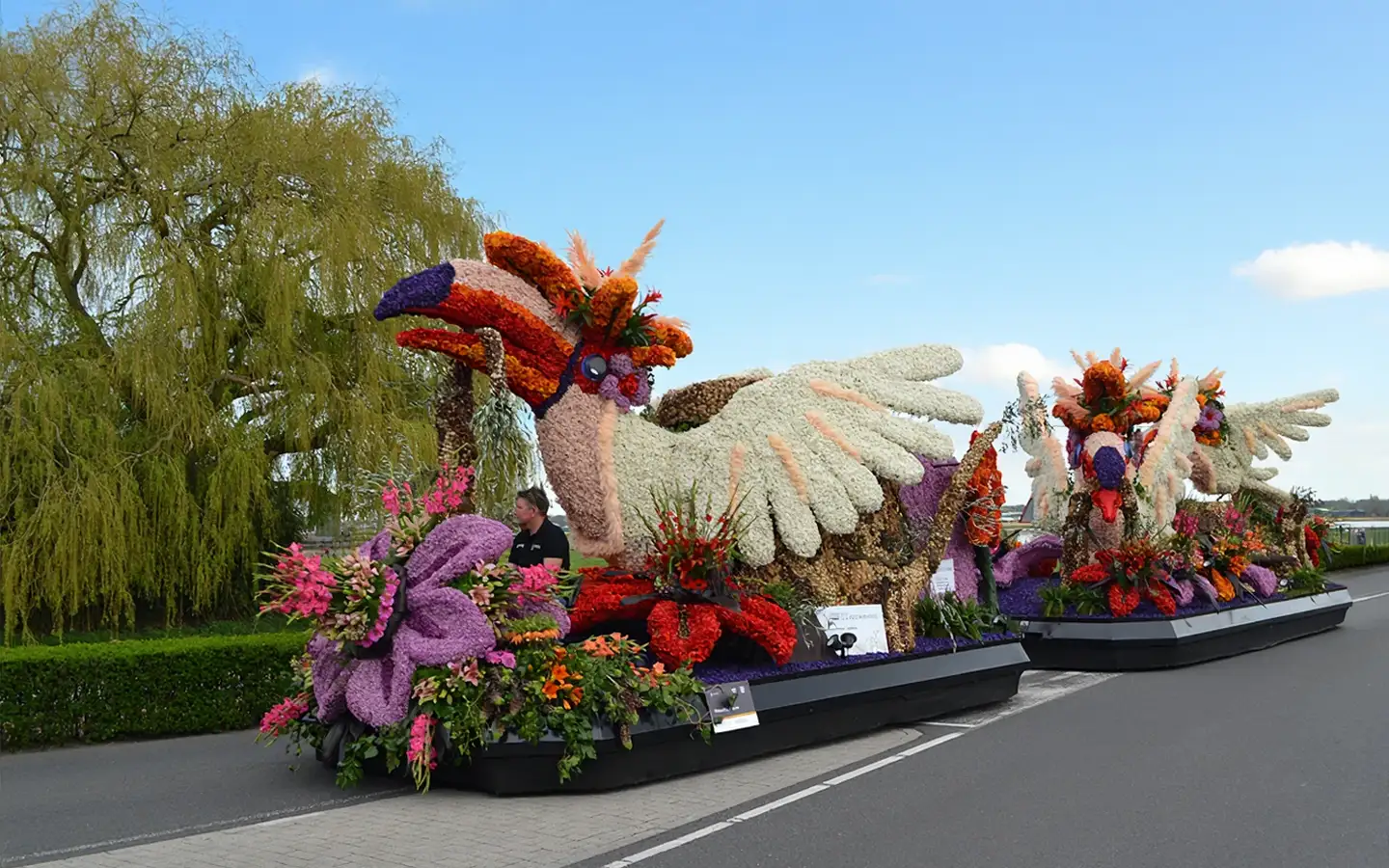 Step into the vibrant world of the Flower Parade, where imagination comes to life across 15 elaborately decorated floats, adorned with spring flowers, including hyacinths, tulips, and daffodils.
