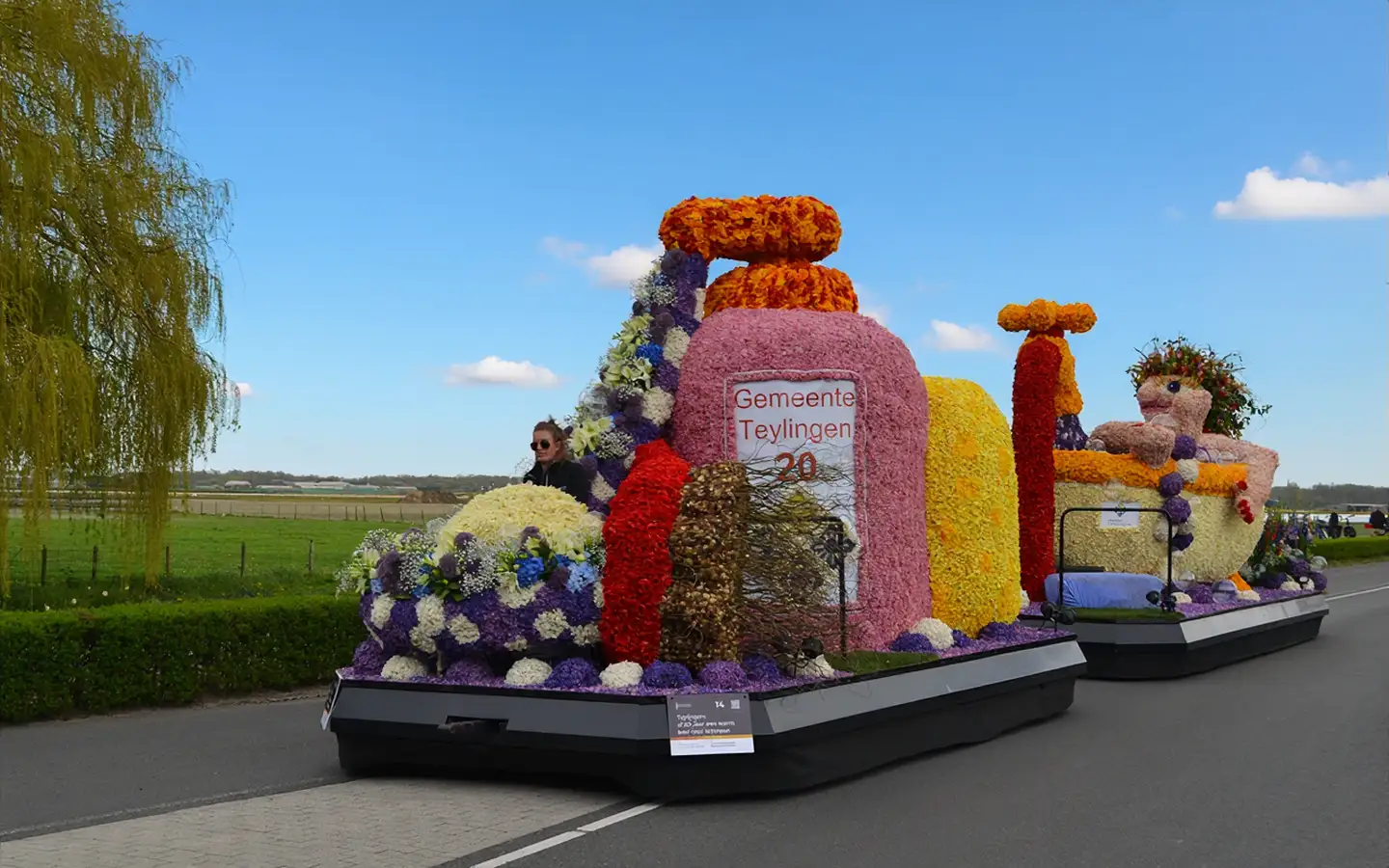Vegetables, flowers, and plants find their way from South Holland to tables and gardens all over the world. What grows here connects people. This float is a tribute to the entrepreneurs, researchers and many more who work daily to achieve quality, innovation, and sustainability. With colour, strength, and character, the pride of the region is celebrated on this float — an ode to everything that takes root, blooms, and grows here.
